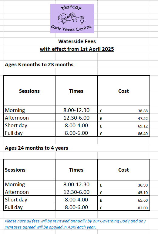For Waterside Day care any funding entitlement you receive will be deducted from your invoice.